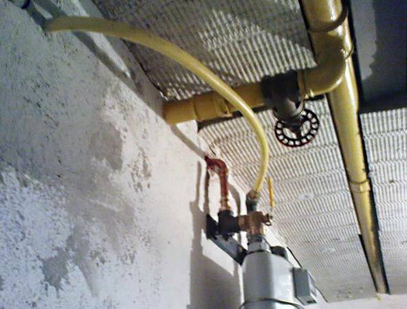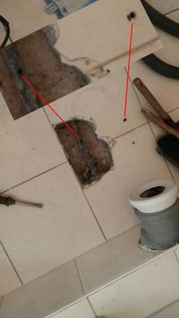 Hier wurde eine Gasleitung im Fußboden unterhalb eines Stand-WCs verlegt. Zu allem Überfluss bohrte man bei der Montage des Stand-WCs auch noch das Gasrohr an. Zum Glück ist nix passiert. Vielen Dank an J. Eberhard!