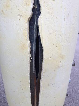 ... Das Ergebnis nach fünf Jahren Druckbelastung plus der ständigen Ausdehnung durch Erwärmung war ein geborstener Warmwasserspeicher.