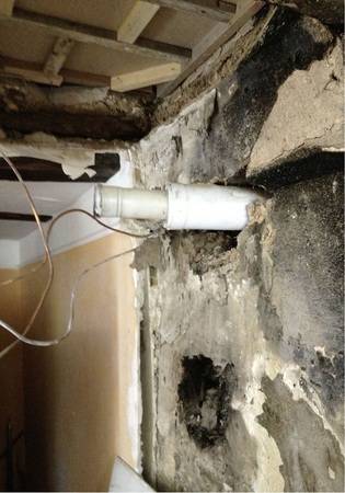 An dieser Stelle (Pfeil) traten Abgase in die Wohnung aus. Die Anlage wurde vom Kaminkehrer stillgelegt. ...