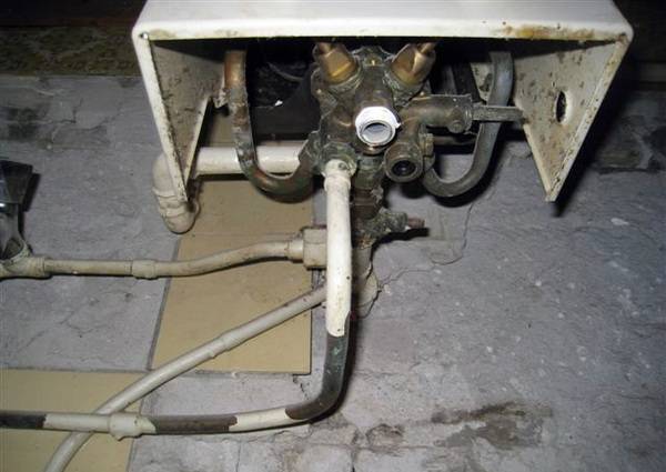 Der Kundendiensttechniker traute seinen Augen nicht, als er den Anschluss des Durchlauferhitzers gesehen hatte. Der Gasschlauch wurde am Gerät nur von einer Schlauchklemme gehalten. Gefunden in Süddeutschland von T. Zerlaut - vielen Dank!