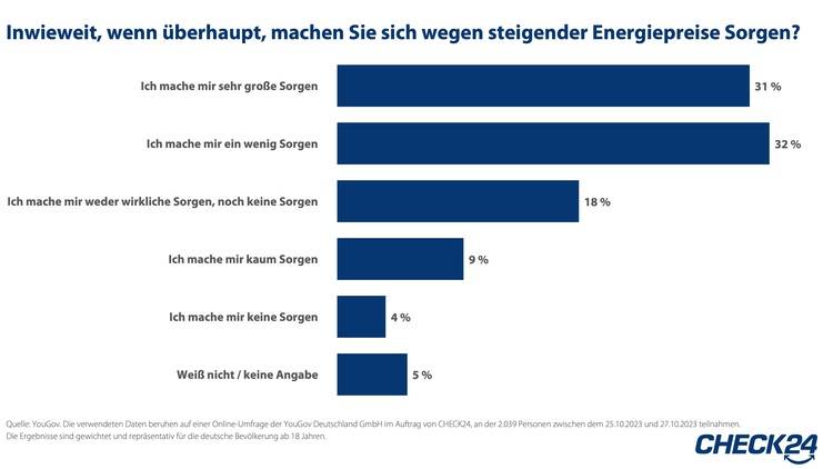 1Quelle: YouGov. Die verwendeten Daten beruhen auf einer Online-Umfrage der YouGov Deutschland GmbH im Auftrag von CHECK24, an der 2.039 Personen zwischen dem 25.10.2023 und 27.10.2023 teilnahmen. Die Ergebnisse sind gewichtet und repräsentativ für die deutsche Bevölkerung ab 18 Jahren.