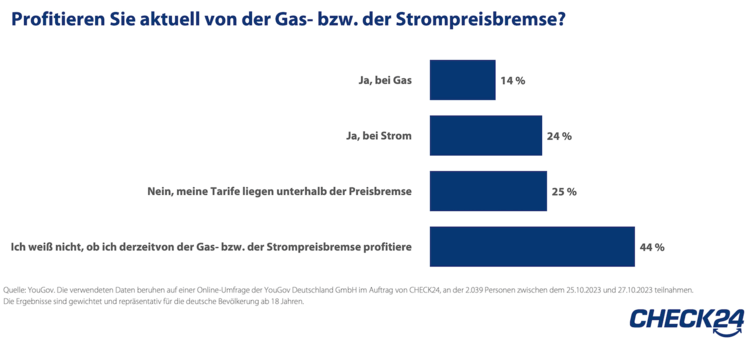 Besonders auffällig ist, dass 44 Prozent der Befragten nicht wissen, ob sie zurzeit von der Gas- bzw. Strompreisbremse profitieren. Verbraucher sollten jetzt die Energiepreise prüfen und wenn möglich wechseln. Wer in einem Vertrag unterhalb der Preisbremsen wechselt, braucht keine Sorgen vor überraschend hohen Kosten haben.