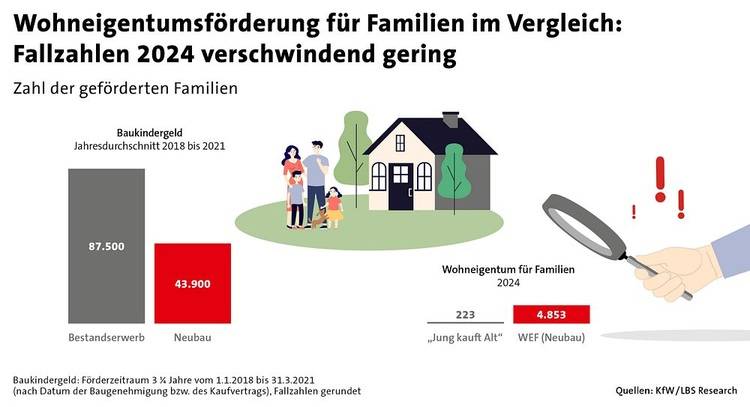 Um die Qualität der heutigen Förderung besser einordnen zu können, darf ein Vergleich mit dem erfolgreichen Baukindergeld nicht fehlen. Schon die Gegenüberstellung der nackten Fallzahlen spricht eine klare Sprache (Grafik):