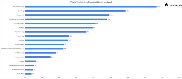 Klassische Handwerker-Tätigkeiten wie der Kundendienst oder die Baustelle folgen nach der Bauleitung auf Platz 3 und 4 in unserer Auswertung.