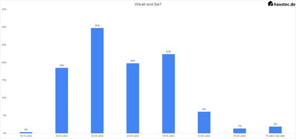 Das Handwerk altert, der Nachwuchs fehlt und die Fachkräftelücke wächst weiter. Die demographische Entwicklung spiegelt sich auch in unserer Umfrage wider. Im Vergleich zur Gehaltsumfrage 2019 sind die Umfrageteilnehmer wesentlich älter. Die Mehrzahl der Teilnehmer lag 2019 bei 30 bis 39 Jahre (35 Prozent) und 20 bis 29 Jahre (30 Prozent). In der aktuellen Studie bilden die 30- bis 39-Jährigen zwar den größten Anteil, der Anteil der 40- bis 59-Jährigen ist allerdings wesentlich gestiegen.