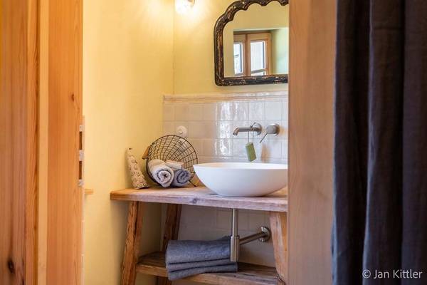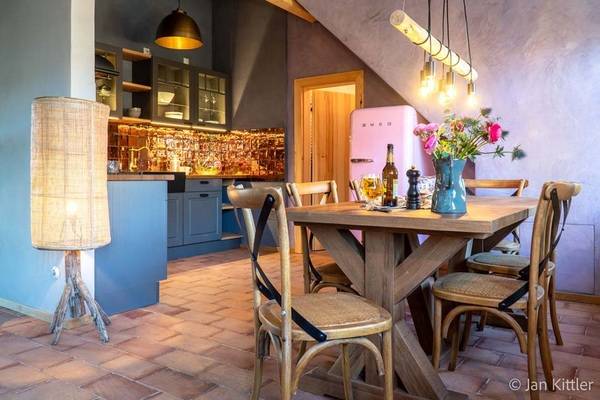 Ein 200 Jahre alter Vierseithof in Bernau bei Berlin wurde zu einer Hotelanlage umgebaut. Die Gebäude sollten dabei in ihrer Form erhalten bleiben und viel ursprüngliches Flair atmen. Den Bauherren war wichtig, auf den Einsatz von Materialien wie Gips, Plastik und Beton möglichst ganz zu verzichten.