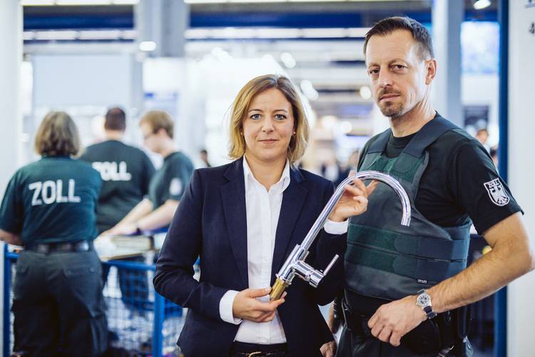 Der vom VDMA Fachverband Armaturen initiierte Zollkontrollrundgang wurde schwerpunktmäßig in Halle 4 durchgeführt. Insgesamt waren über 20 Bedienstete des Hauptzollamtes Darmstadt sowie Vertreter von Schutzrechtsinhabern involviert, wie unter anderem Dornbracht, Franke Aquarotter und Oventrop, die stark von Produktnachahmungen betroffen sind.