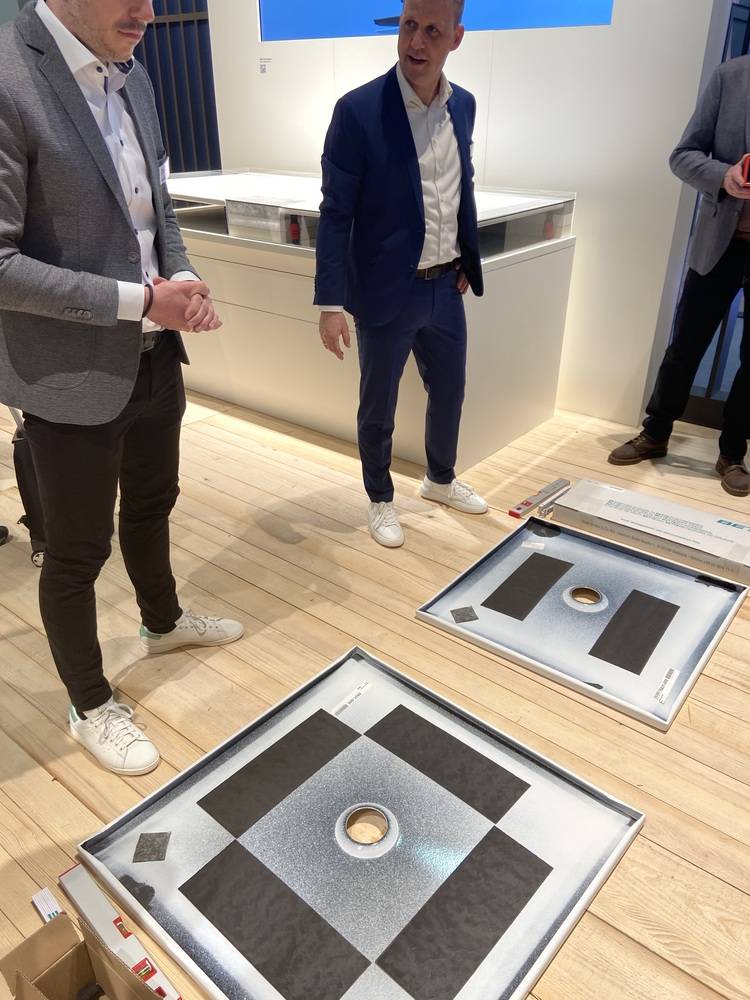 Bei BETTE gab es viel zu sehen und auszuprobieren - u.a. die Neuheit BETTE Level, die nichts weniger als den Einbau von Duschflächen revolutionieren soll. Wie viel schneller man wirklich damit ist, wurde live demonstriert.