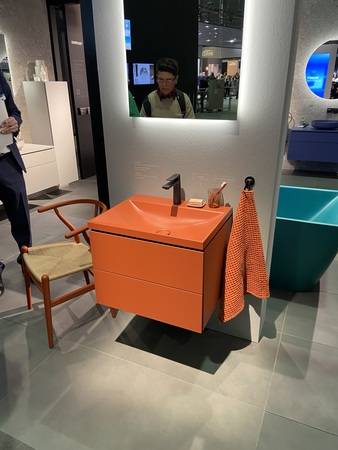 Der erste Tag startete für uns mit einer Überraschung - Duravit hat nun auch Farbe im Programm! Die tolle Badkeramik- und Möbelserie Vitrium gibt es nun in 5 Farben.