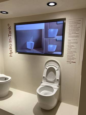 Geberit musste sehr sehr oft demonstrieren, wie gut die neue Spülung wirklich spült. Und bei Kaldewei wählten die Besucher die nächsten Farben für die Waschbecken-Kollektion aus.