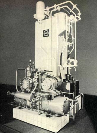 Nach dem Krieg wird 1950 die Borsig AG als Tochter der Rheinmetall AG neu gegründet. In der Produktpalette: Dampferzeuger, Apparate und Maschinen, Kälte- und Chemieanlagen, später Turboverdichter und Kugelhähne. Hier eine Röhreneiserzeugungsanlage für die Fischwirtschaft mit einer Leistung von 5t pro Tag.