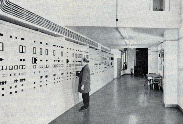 Schalttafel der Klimaanlage eines Münchner Theaters von 1970. Über diese Hauptschalttafel wurden alle heizungs- und lüftungstechnischen Einrichtungen des Hauses erfasst.