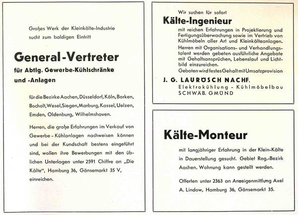 Als 1948 das erste Exemplar der Fachzeitschrift Die Kälte erschien, waren viele Fabrikanlagen zerstört und die Materialversorgung äußerst beschränkt. Der Wiederaufbau und die Herstellung von Komponenten und Kälteanlagen begannen sehr zögerlich.