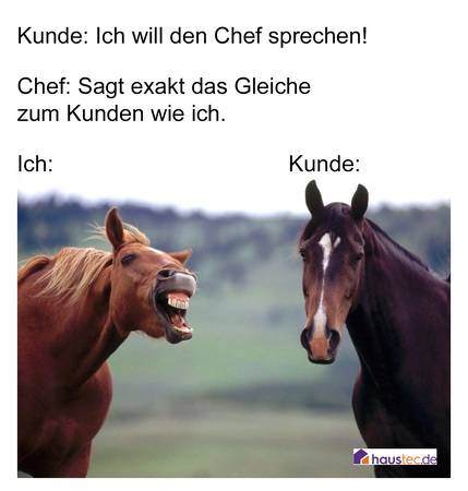 Damit das nicht so negativ 'rüberkommt: Wir lieben Kunden! Niemand stellt SO GUTE Fragen, spornt uns zu Höchstleistungen an, auch in soziologischer Hinsicht - außer vielleicht noch unsere Kollegen. Oder der Chef.