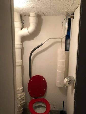 Ok, die Spülung ist etwas extravagant, aber das passt doch ganz gut zur roten Toilette. Hat nicht jeder! Herzlichen Dank, J. Zimnik!