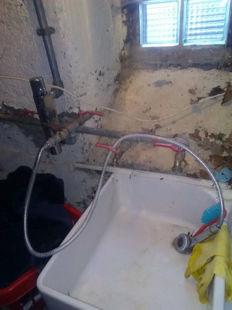 Bei der Wartung am Ölkessel fiel M. Mies (Vielen Dank!) auf, irgendetwas an diesem Waschmaschinen-Anschluss war anders....