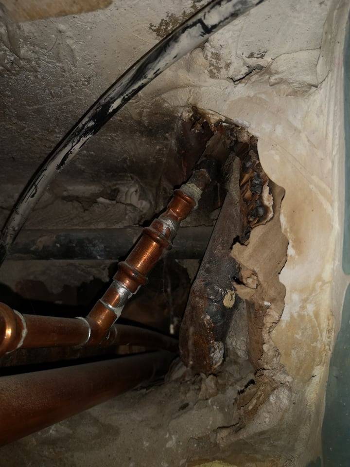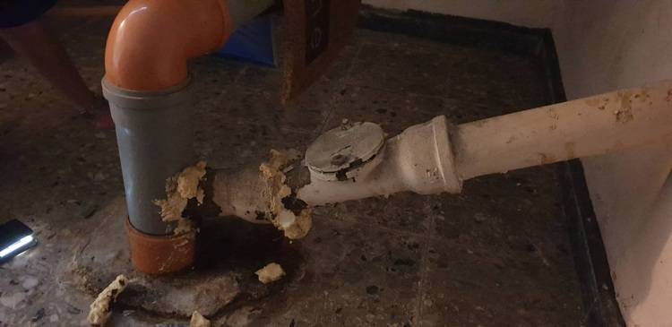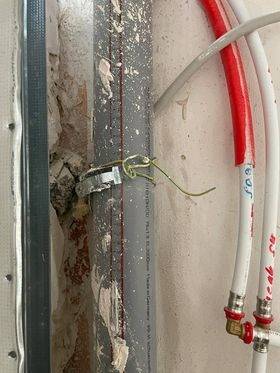 Gefunden von Dennis Exner (Vielen Dank!) bei Kunden in einem Mehrfamilienhaus, weil der Keller mal wieder nass war bei Regen. War seit 4 Jahren so.... Nudelkunst am Rohr