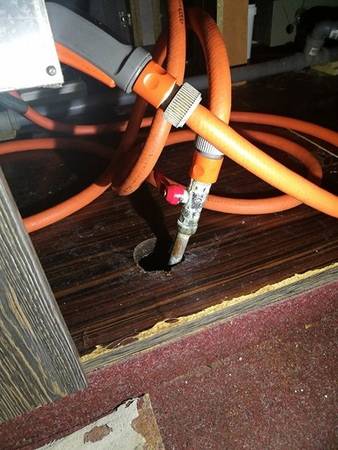 Dieses Schlamassel war für die Reinigung einer Buffetbar in einem China-Restaurant gedacht und wurde von den Inhabern selbst liebevoll "zusammengesteckt". Natürlich war der ganze Fußboden aus Parkett auf einer Fläche von mehr als 30qm durch, was unter dem Teppich allerdings erstmal nicht weiter aufgefallen ist. Vielen Dank, D. Franke!