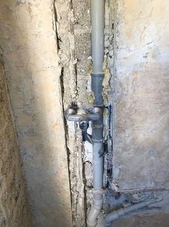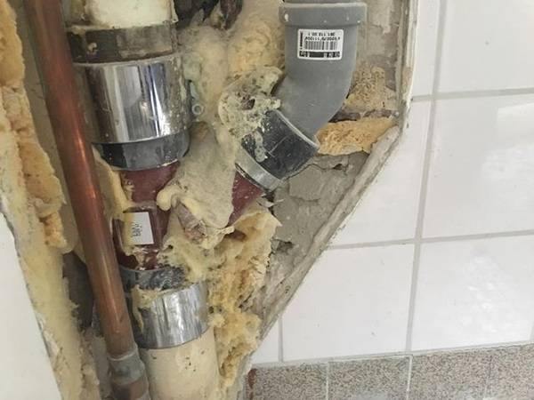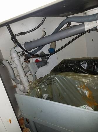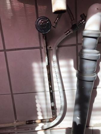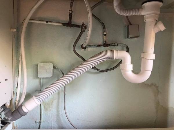 R. Vadder (Herzlichen Dank!) fand diese künstlerisch wertvolle Spülrohrführung. Und es war sogar dicht. Zumindest eine Weile.
