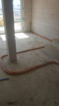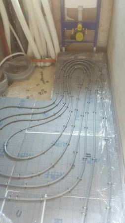 Große Verlegekunst - gefunden von M. Linzig (Vielen Dank!). Schön, dass es unter der Toilette gut warm wird. Wärme vorm Waschbecken wird ja generell überbewertet.