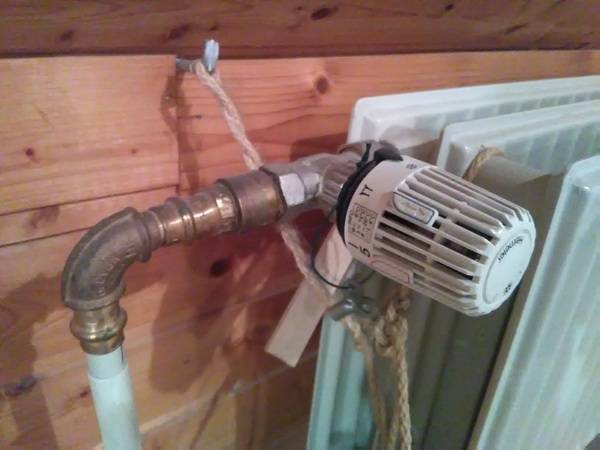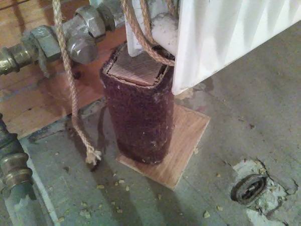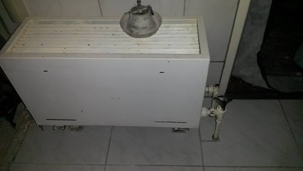Wenn Hausmeister improvisieren... Hier entdeckte U. Frondorf (Vielen Dank!) eine vom Hauswart erdachte Lösung gegen übermäßige Wärmeabgabe. Jemand hatte wohl den Heizkörper-Thermostatkopf weggesäbelt. Und bis Ersatz da war, wurde so die "Stufe 5" umgangen.