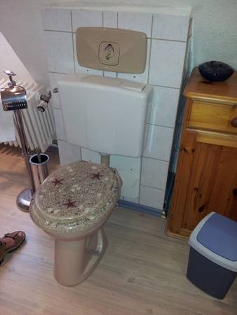 Back to the roots! Da wollte ein findiger Heimwerker wohl Geld sparen und hat seine Toilette trotz bestehender Vorwandinstallation für ein Wand-WC wieder in ein Stand-WC umgewandelt. Vielen Dank, M. Rosemann!