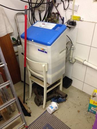 Praktisch: Der Stuhl fehlt zwar jetzt in der Küche, dafür hat man aber jetzt Platz, um unter dem Wasserenthärter noch allerlei Gerümpel aufzubewahren. Einige Hersteller bieten Enthärtungsanlagen mittlerweile zusammen mit Stuhl an. Das Gerümpel muss man sich jedoch weiterhin selbst zusammenstellen. Vielen Dank, U. Frondorf!