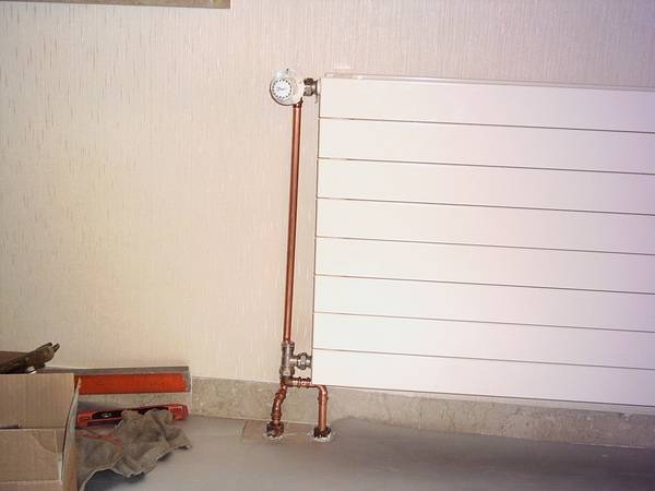 Ungeübte Augen könnten diesen Heizkörpervorlauf für schief halten. Ganz zu schweigen davon, dass man hier bei der Rohr-Installation völlig hilflos bei der Frage war, wo denn nun genau Vor- und Rücklauf aus dem Boden herausschauen sollen. Aber mit Pressfitting-Kunst kann man auch solche Irrungen wieder ausgleichen. Vielen Dank, U. Frondorf.