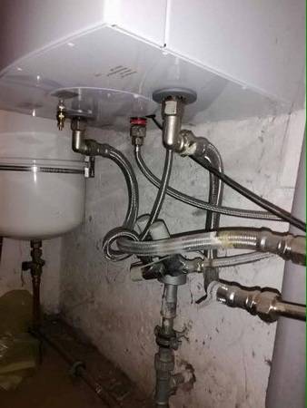 Flexschlauch + Kitt = die perfekte Einleitung ins Abwasserrohr. Die Avantgarde der Installationstechnik schreitet voran. © D. Papke