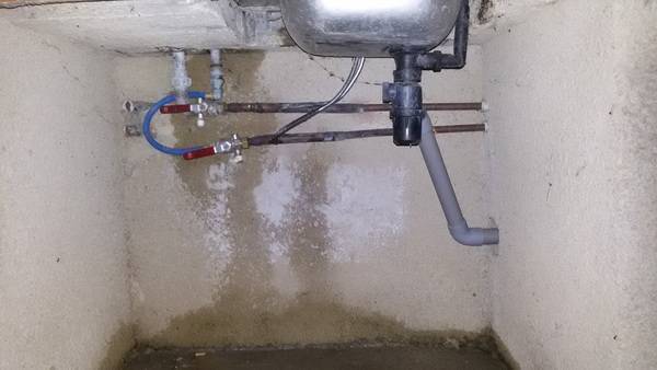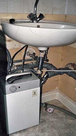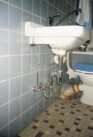 Diese in Eigenleistung erbrachte Installation muss man eindeutig unter „Kunst am Bau“ eingruppieren. Bastelfreudigkeit und Erfindungsreichtum des Bewohners kennen offenbar keine Grenzen. Leider ist es nur eine Frage der Zeit bis ein Wasserschaden auftritt... Herzlichen Dank an W. Stöffler!