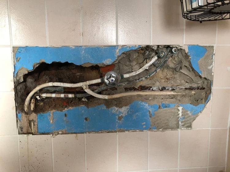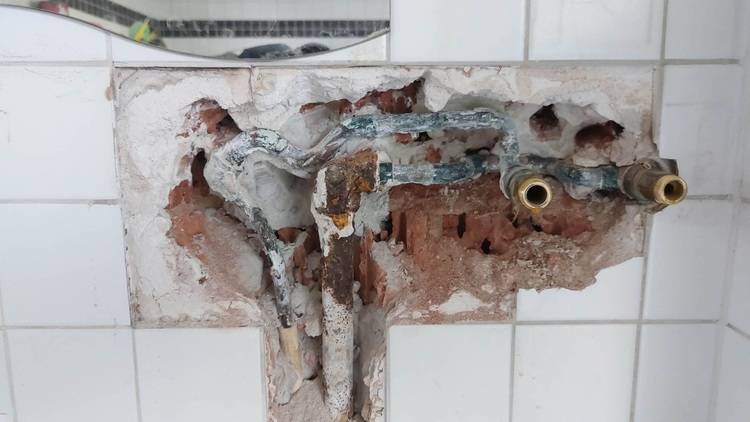 "Einmal Rohre und Absperrung für nichts? Hier bitteschön!" Vielen Dank für den Blick in die Wand an Chris T Rose. Was für ein Gemurkse!