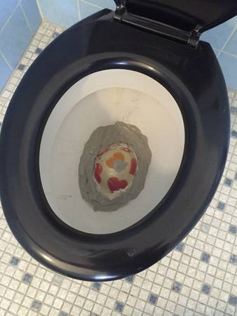 Ganz neue Art der Stilllegung, entdeckt von M. Messerer - vielen Dank! Der Kunde hat mit Ball und Silikon eine WC-Anlage außer Betrieb gesetzt. Der Raum wurde so „stillgelegt“ und als Aktenlager verwendet.