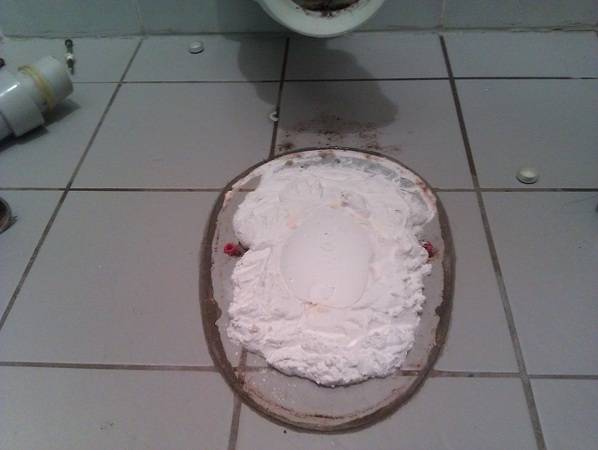 Silicon Valley unterm WC-Topf fand S. Müller (Vielen Dank )bei der Demontage. Wahrscheinlich hat der Topf sich nicht befestigen lassen wollen. Sein Eigenleben wurde ihm aber ausgetrieben. Nach dem Einsatz von zwei Tuben Silikon wurde er ruhiger.