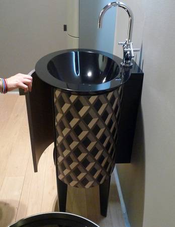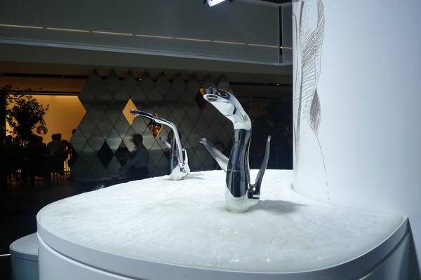 Die Alessi Swan von Hansa wurde von einzelnen Besuchern auch für einen Pinguin gehalten - was die Armatur nicht weniger außergewöhnlich macht. © haustec.de/Andrea Bauer