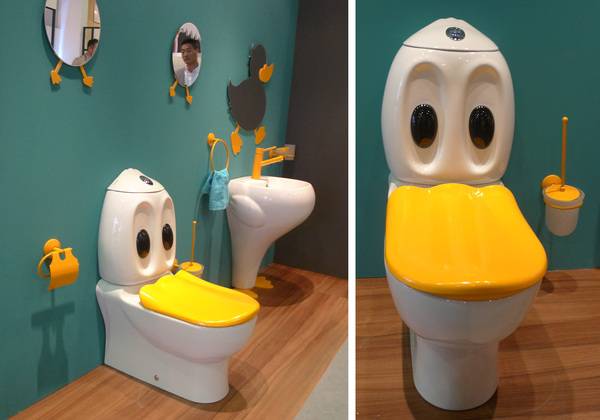 Ob Kinder wohl gern auf diese Toilette gehen? Ducky von Creavit schaut schon ein bisschen aufdringlich. © haustec.de/Andrea Bauer