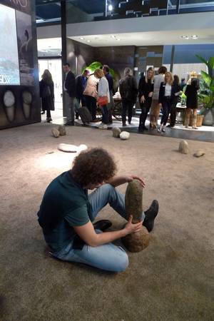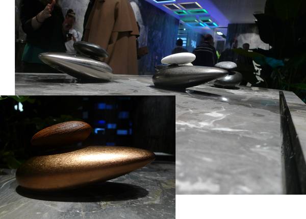 Man hat sich schon fast gedacht, woher die Inspiration kam - und siehe da, ein Künstler stapelt gleich am Stand. Weitere Beiträge zur ISH