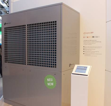 Nicht zu übersehen und passt nicht in jeden Garten: Die Luft/Wasser-Wärmepumpe (45kW) von alpha innotec. © haustec.de/Oliver Janßen