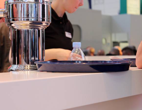 Nicht kleckern, sondern klotzen: Bei vielen Herstellern gab's Erfrischungen aufs Haus. © haustec.de/Oliver Janßen