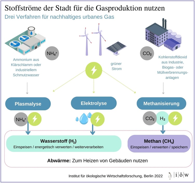 Das Prinzip ‚Upcycling‘ eignet sich nicht nur für ausrangierte Kleidung, Geräte oder Möbel, sondern auch für die Gasversorgung, wie Forschende vom Institut für ökologische Wirtschaftsforschung (IÖW) vorschlagen: Städte könnten Abfallprodukte aus der Industrie und aus Kläranlagen weiternutzen, um daraus mithilfe von erneuerbarem Strom nachhaltiges Gas zu gewinnen. Zwar können Städte so nur einen kleinen Teil ihres Gasbedarfes selbst decken, doch hätte die urbane Gasproduktion deutliche ökologische sowie wirtschaftliche Vorteile und könnte Gasimporte ergänzen. Das zeigen die Forschenden am Beispiel Berlins in einem vom Bundesministerium für Wirtschaft und Klimaschutz geförderten Projekt.