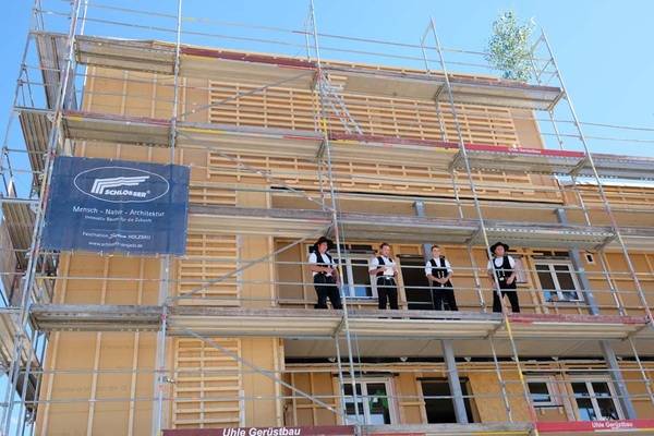 Das Bauprojekt „Bruder und Schwester“ in Schwäbisch Hall, das nach rund elf Monaten Bauzeit im Sommer bezugsfertig wird, soll Abhilfe schaffen und bietet eine Kombination aus eigenständigen Wohnungen und Gemeinschaftsflächen. Die Dachgeschosse der Gebäude stellen 135 Quadratmeter Platz für gemeinsames Arbeiten („Co-Working“), Yoga-Aktivitäten oder gesellige Familienfeiern zur Verfügung. Die hauseigene Obstwiese, Hochbeete und eine Pergola mit Sitzgelegenheiten ermöglichen geselliges Beisammensein bei höheren Temperaturen.
