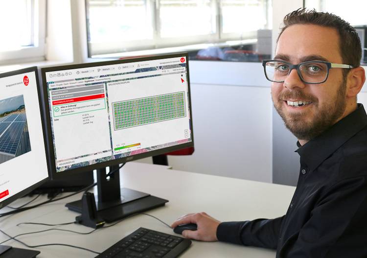 Der Nutzer legt sein Projekt an, in dem er mit Hilfe der Google Maps Satellitenbilder und grafischer Werkzeuge sein Dach und das dazugehörige Modulfeld zeichnet. Er bestimmt wichtige Parameter des Daches wie Dachneigung oder Sparrenabstand, wählt die Eindeckungsart aus und erhält das passende Montagesystem zur Auswahl.