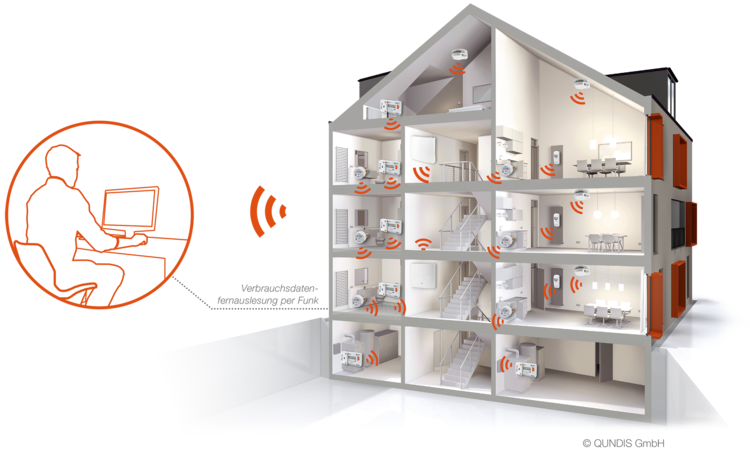 Das Verfahren Walk-by hat allerdings seine Nachteile. Dazu gehört unter anderem, dass es nicht die optimale technische Lösung ist, um die gesetzlichen Anforderungen aus der EED umzusetzen. Die Walk-by-Lösung kann zwar EED-konform gestaltet werden, allerdings wären die Aufwände und Kosten dann sehr hoch. Dass eine komplette Umstellung auf eine Fernauslesung zu teuer ist, ist hingegen häufig mehr ein Bauchgefühl als eine Tatsache. Qundis hat mit zwei Beispielkunden eine Prozessanalyse gemacht. Inklusive Kilometerpauschale, Zeit für Datenaustausch zwischen den Geräten und Lohnkosten (neue Bundesländer). Man kam auf 35 Euro bis 55 Euro pro Wohngebäude. Dieser Aufwand lässt sich auf ein absolutes Minimum reduzieren, wenn ein Unternehmen komplett auf Zählerfernauslesung umstellt.