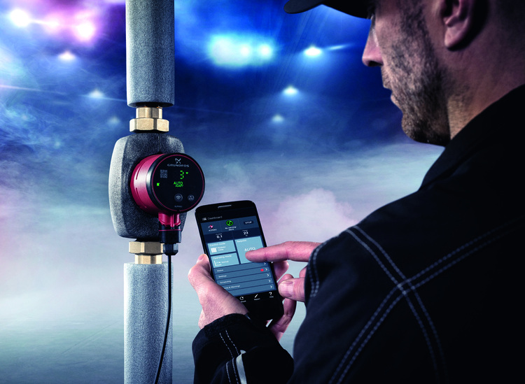 Ein Vorteil der Alpha3 ist die Steuerung per Smartphone mit der kostenfreien App Grundfos GO Remote. Die Plattform macht Parametrierung und Überwachung der Pumpe komfortabel. So können beispielsweise bei der Inbetriebnahme mit einem einzigen Klick die optimalen Parameter für Fußbodenheizung, Radiatorheizung und kombinierte Anlagen eingestellt werden. Sollwerte lassen sich anpassen, und Fehler- sowie Statusmeldungen werden als Klartext ausgegeben. Darüber hinaus hilft die App mit automatisierten Berichten und dem direkten Zugriff auf Online-Tools Zeit zu sparen. GO Remote arbeitet nicht nur mit der Alpha3 zusammen, sondern auch mit der Magna3 oder Modellen mit aktuellem MGE-Motor und bietet entsprechende Konfigurationsmöglichkeiten. Die App ist damit eine Allroundlösung, die jetzt auch die Steuerung der kleineren Nassläufermodelle ermöglicht.