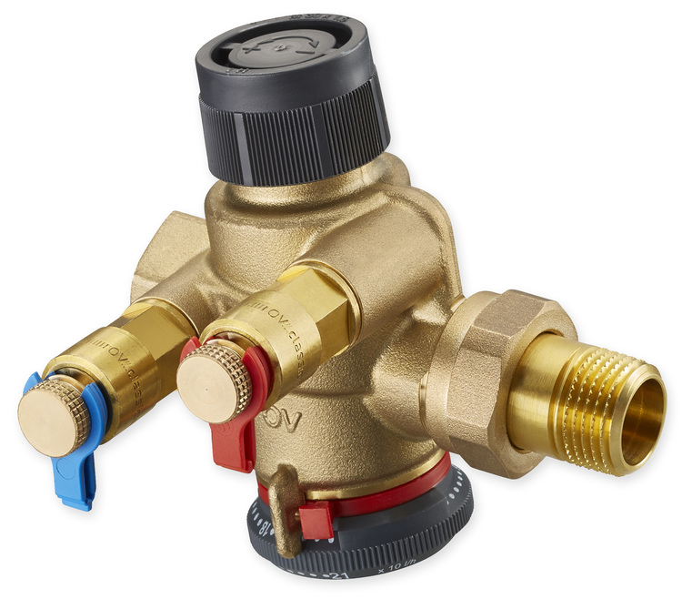 Das „Cocon QTZ“ Ventil ist aus entzinkungsbeständigem Messing gefertigt und kompakt sowie platzsparend konstruiert. Seine Form ermöglicht eine einfache Integration in bestehende Systeme. Farbliche Hervorhebungen der Messventile und des Blockierrings in rot und blau vereinfachen die Handhabung.