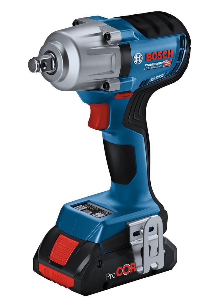 Der Drehschlagschrauber GDS 18V-450 HC Professional bietet Profis Kontrolle und Flexibilität bei Metall- und Holzanwendungen. Mit einem Losbrechmoment von 800 Newtonmetern löst er zum Beispiel selbst verrostete Schrauben bei Nutzfahrzeugen.