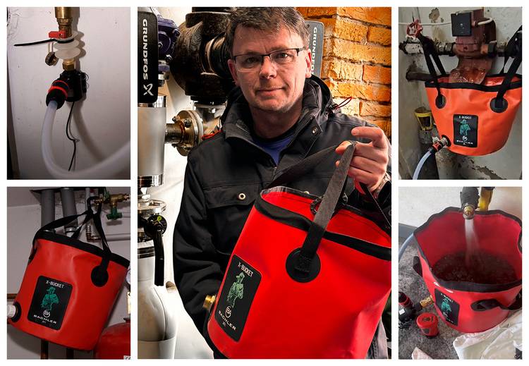 Bachlers X-Bucket ist in drei Varianten erhältlich: Die Version Basic mit einem ¾“-Anschlussschlauch kann bei Bedarf als Ablaufwanne fungieren. In der Ausführung Professional lässt sich eine 8 l/m starke Pumpe mittels Stecksystem von außen anbringen, um die Flüssigkeit in einen nahegelegenen Siphon oder Kanalrohr abzupumpen. Und die Serie Premium M bzw. Premium B beinhaltet das 12-Volt-Akkusystem, bestehend aus einer Ladeschale, Akku und Ladeadapter, passend zu vielen gängigen Systemen.
