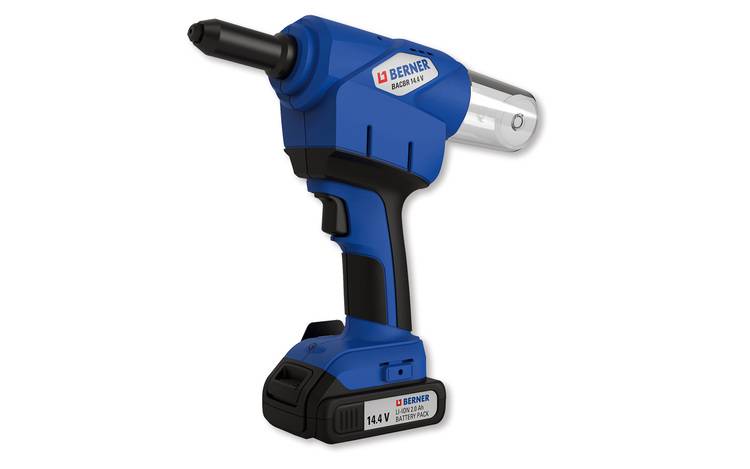 Das Akku-Blindnietsetzgerät BACBR 14,4 V ist für Blindnieten aus allen Materialien mit einem Durchmesser von 2,4mm bis zu 5,0mm geeignet. Die zwei 14,4 V Lithium-Ionen-Akkus haben eine Ladezeit von nur 30 Minuten. Durch den kabellosen Antrieb ist das Gerät ideal für Arbeiten an schwer zugänglichen Stellen, wie bei Elektro- und Installationsarbeiten im Metallbau oder im Bereich der Lüftungstechnik. Die LED-Beleuchtung bietet gute Sicht auf die Nietstelle. Der transparente Auffangbehälter und die Verschlusskappe, zum Setzen von Nieten ohne Auffangbehälter an engen Stellen, sorgen für einen aufgeräumten Arbeitsplatz.