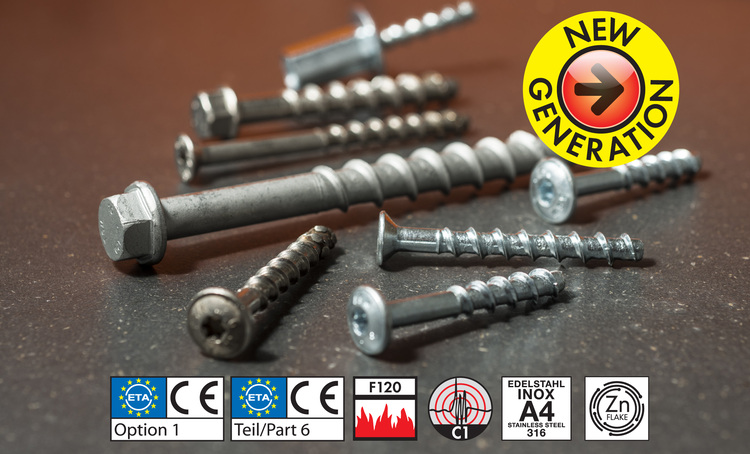 Für Anwendungen im Aussenbereich wurde eine Schraube aus rostfreiem Material (A4) ins Sortiment aufgenommen. Mit dieser Neuerung sowie den verschiedenen Kopf-Geometrien sind Sie für die unterschiedlichsten Anwendungen wie z.B. die Montage von Geländer, Fassaden, Konsolen, Stahlprofilen, Krane und Maschinen gerüstet. Durch die ETA-Zulassung Option 1 sind die Schrauben auch für Überkopf-Montagen und bei Anforderungen an den Brandschutz geeignet, was ihren Einsatzbereich erweitert.