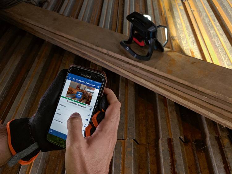 Handwerker können den Akku-Baustrahler über das integrierte Bluetooth-Modul mit ihrem Smartphone verbinden und per App bequem fernsteuern: An- und ausschalten, dimmen, mit mehreren Strahlern aus dem Connectivity-Programm von Bosch koppeln, Timer aktivieren, Ladezustand der Akkus abfragen, den Zugriff per PIN-Code kontrollieren – das alles geht per Fingertipp.