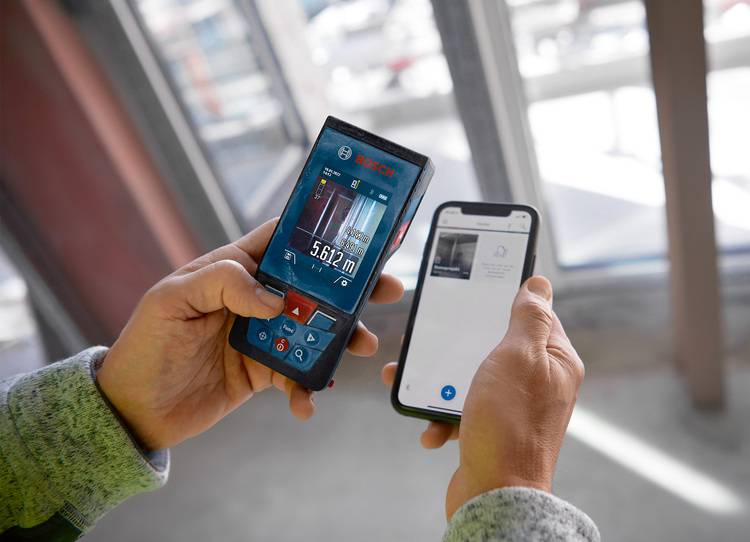 Darüber hinaus übertragen GLM 100-25 C Professional und GLM 150-27 C Professional ihre Messwerte per integrierter Bluetooth-Funktion in die MeasureOn App, in der die Messwerte per Smartphone und Tablet digital weiterverarbeitet werden können. So steigern Handwerker und Planer ihre Effizienz – vom Dachdecker und Gerüstbauer über den Landschaftsgärtner bis hin zum Bauleiter.